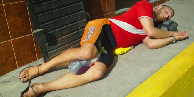 On the riverboat to Pucallpa, the hammocks were all hung at very steep angles because the provided attachment points were placed very close together. The result is a hammock position suitable for sitting upright. Sleeping is possible if you are very short and have enough space to sleep diagonal in the hammock.