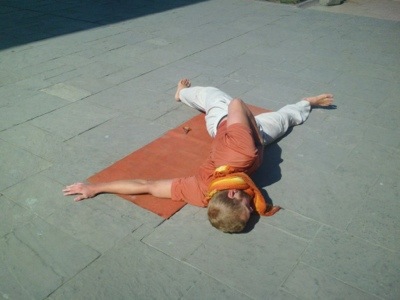 To begin with, here are a few warmups or “daily movement checkups” that can be done with each of these surfaces (like the morning sun salutations practiced by some, including my wife). These checkups take the body through the full range of motion of nearly all the joints. Doing one of these each morning lets me know how my body is doing, serving as an early warning system for anything that might be out of order and in need of attention. Go through each movement in the progression slowly, exhaling during movement and paying attention to how it feels. I recommend a breathing cycle with an exhale three times as long as the inhale (i.e. 2sec inhale and 6 sec exhale). The exhale helps relax you during stretches and reduces pressure during movements.
