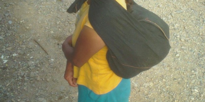 A wide swath of the blanket is used as the shoulder strap which spreads out the pressure. This woman has placed the load in the arch of her back. This is upright posture with arched back is more common for a mid to light weight load.