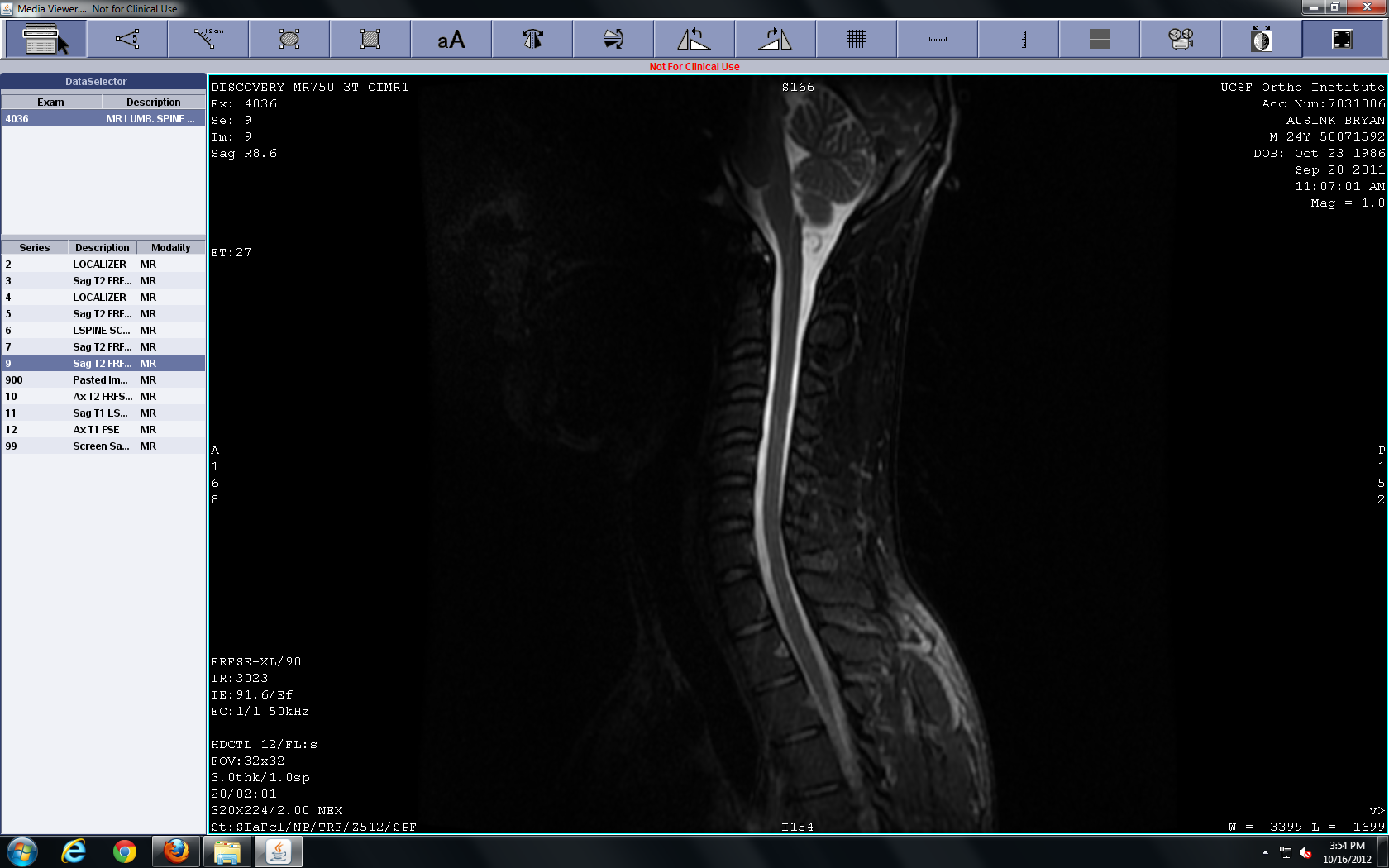 Here is an MRI of my cervical spine from 2010. I am lying down on my back and doing a chin tuck. I was surprised to find that my spine was actually straight. I can’t say that a straight spine is better than one with a smooth curve but it does show that I am not stuck in a curved position.