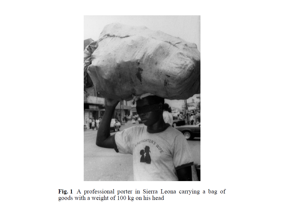 If you are still interested in the topic another good review was recently published by Porter et al ‘Health impacts of pedestrian head-loading: a review of the evidence with particular reference to women and children in sub-Saharan Africa.’ Authors Porter G, Hampshire K, Dunn C, Hall R, Levesley M, Burton K, Robson S, Abane A, Blell M, Panther J.