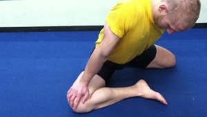 Result: Feeling of falling backwards began at about 30 sec, a low intensity discomfort/tightness began on the right side at 1min 20sec and worsened at 3min 30sec and at 4min 46sec it was intense enough to make me want to change positions. (I decided not to work on long sit because it with my height it takes up a lot of space and I have already worked extensively on this ROM with improvement but would rather work on something else for awhile. I decided not to do seiza because the problem is that my feet go numb and I really don’t have any idea what to do to prevent that.)